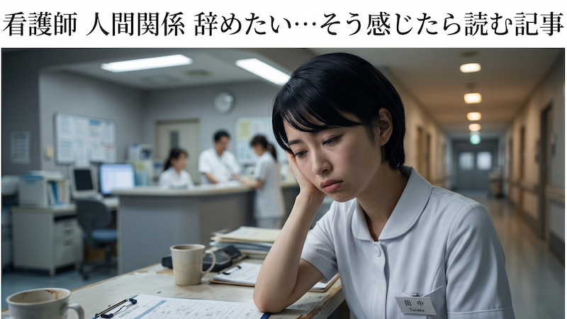 【新着記事】 転職エージェント 2026/4/19 看護師が人間関係で辞めたいと感じたら|原因・対処法・転... 転職エージェント 2026/4/19 ナース専科 転職(旧:ナース人材バンク)の評判・口コミ... 転職エージェント 2026/4/18 看護師が夜勤なしで転職する方法|おすすめの職場・転職の... キャリアアップ 2026/4/18 美容クリニック看護師に転職する方法|年収・仕事内容・注... キャリアアップ 2026/4/16 透析看護師への転職ガイド|仕事内容・年収・メリット・デ... 有利な職場探し! 転職エージェント選び 失敗しない選び方 自分に合う看護師探し 看護師の珍しい求人66種 のんびりできる職場30選 美容看護師になるには? 年収800万円超? アートメイク看護師 看護師転職の基礎知識! 看護師転職の流れ 転職を決意するタイミング 自己分析と転職目標設定 履歴書・職務経歴書の作成 応募書類の送付と追跡 面接準備とポイント 面接後のフォローアップ 内定・条件交渉のステップ 退職手続きと新しい職場への移行 転職理由別アドバイス 人間関係 スキルアップ・キャリアアップ 勤務条件・待遇改善 ライフスタイル変化 職場環境・業務内容の改善 地方へ行きたい!働く場所の変更 看護師以外の職へトライ! 年代・経験別のアドバイス 未経験分野へのチャレンジ Twitter Share Hatena LINE URLコピー author