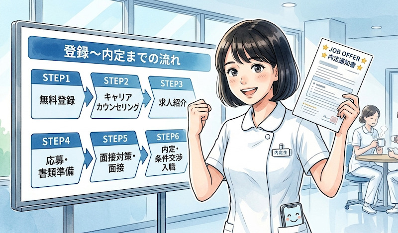マイナビ看護師に登録してから内定を得るまでの一般的な流れをご説明します。
