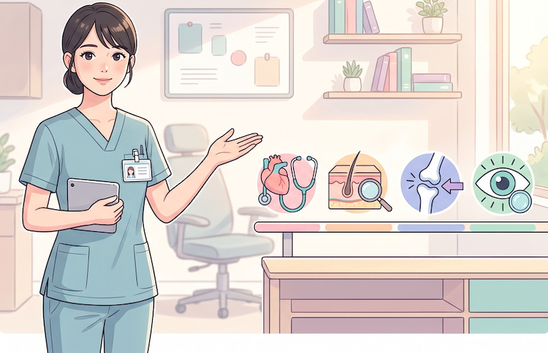 一口に「クリニック転職」といっても、診療科によって仕事内容・雰囲気・忙しさが大きく異なります。